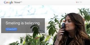 "ما هذه الرائحة؟ اكتشفها مع حاسة الشم من جوجل".. جملة وضعتها شركة جوجل في الصفحة الرئيسية للمتصفح، وبالضغط عليها تظهر جملة "حاسة الشم نابعة من القلب" وأسفلها "جرب الإصدار التجريبي لحاسة الشم من جوجل"، وعند الضغط عليه يظهر مربع به صورة لمكان ما مثل صندوق قمامة أو مستشفى وأسفله زر اكتشف الرائحة.